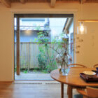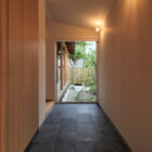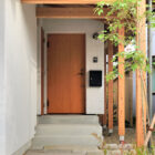 玄関ドアを開けると大きな窓から一枚の絵のように中庭が現れる。