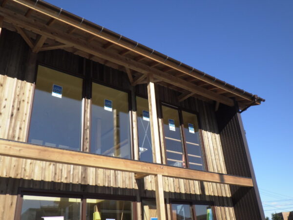 杉板とガルバリウム鋼板をあわせた外観を持つ家。内部には無垢の床板はじめ自然素材を上手に使用した、高性能なエコハウスです。