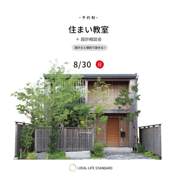 8/30の住まい教室では、設計に関するお話と個別相談会をご案内いたします。