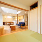 内部は自然素材を採用し、オークの床とシナの建具、珪藻土の壁紙。