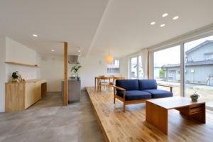 2階浴室と、ゆとりあるリビングを持つ住まい