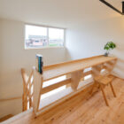 キッチン前の収納棚や造作のテレビ台、吹き抜けに面する造作カウンターや洗面台など、住まいにぴったりとフィットするように、それぞれこだわりながら木を使って造られています。